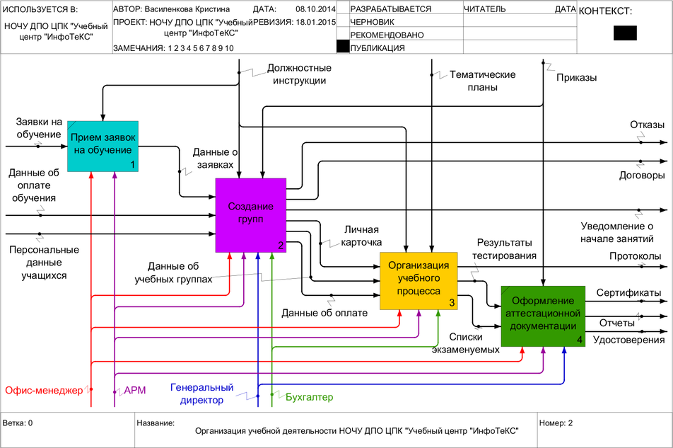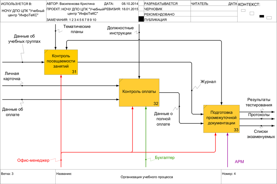 При проектировании структурно-функциональной модели учебной деятельности НОЧУ ДПО ЦПК «Учебный центр «ИнфоТеКС» использовалось CASE-средство "Ramus".