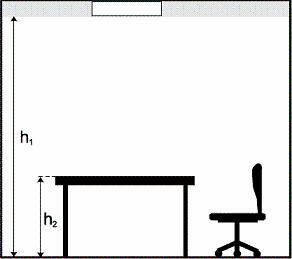 где h1 – высота помещения, м; h2 – высота расчетной поверхности, м.