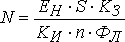 где EН – нормативный уровень освещенности, лк; S – площадь помещения, м2; КЗ – коэффициент запаса; KИ – коэффициент использования; n – количество ламп в светильнике; ФЛ – световой поток одной лампы в светильнике.