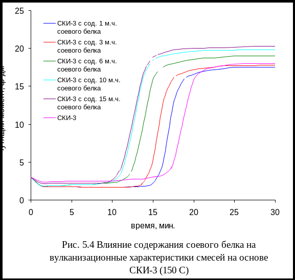 Вулканизационные характеристики резиновых смесей на основе СКИ-3, модифицированного соевым белком. (150оС)