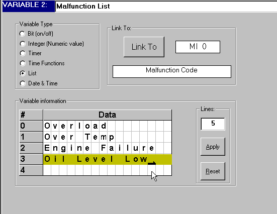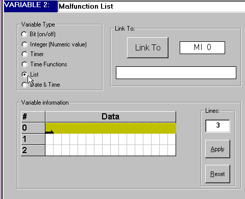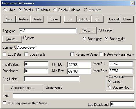 2. Введите имя переменной «Tagname» - например «MI3»