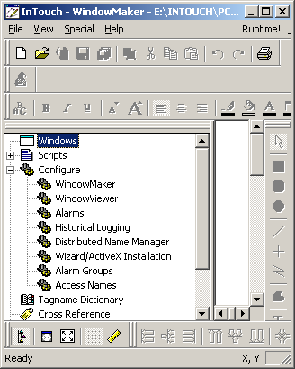 Так выглядит редактор приложений InTouch:
