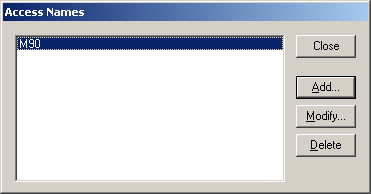 Создадим канал связи с DDE сервером «PComDDE». Для этого раскроем опцию «Configure» и выберем пункт «Access Names».