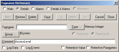 В левом столбце доступных функций запустите «Tagname Dictionary».