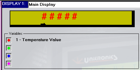 Привязки текста дисплея к переменным и возможности формирования переходов между дисплеями (до 4 переходов).