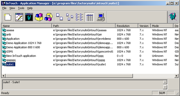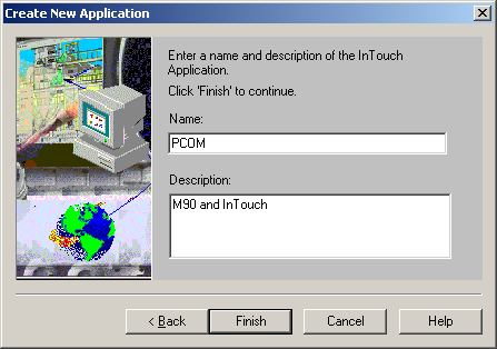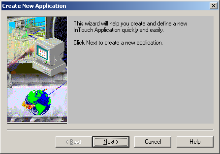 Создадим приложение в SCADA системе InTouch. Запустите менеджер приложений InTouch (Application Manager) командой меню Start\Programs\WonderwareFactorySuite\InTouch\InTouch
