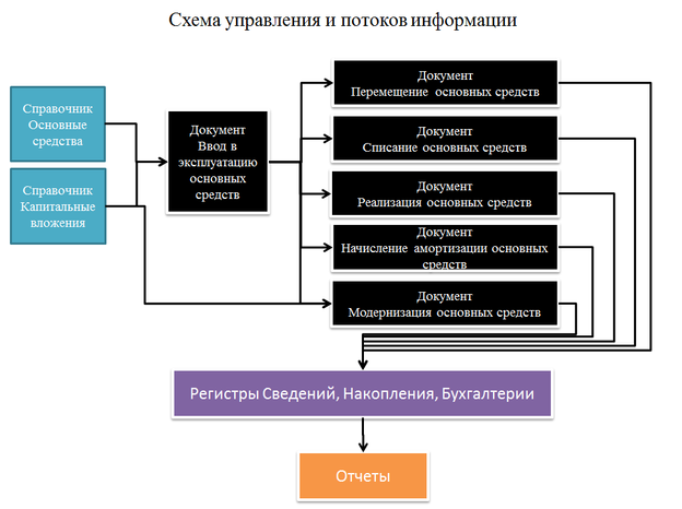 Технологический процесс обработки информации в разрабатываемом модуле учета основных средств, представляет собой как основной процесс учета основных средств, так и отражение операций происходящих с основными средствами.
