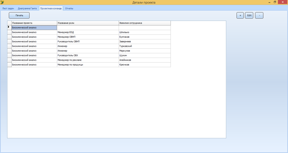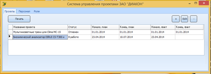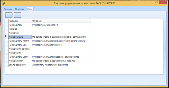 Таким образом, при работе с программой у пользователя есть вся необходимая информация о проектах, которыми компания занимается на данный момент и планирует заниматься в будущем. А также о персонале, работающим над каждым из проектов, и должностях, которые этот персонал занимает.
