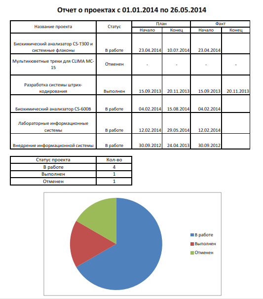 Отчет о проектах компании предоставляет информацию обо всех проектах, находящихся на различных стадиях.