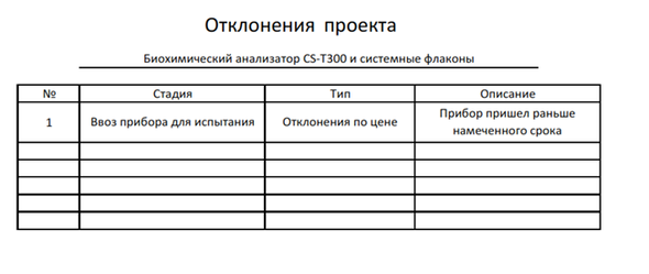 Отчет об отклонениях отображет, соответственно, отклонения конкретного проекта и позволяет сделать выводы о проделанной работе, внести изменения в план и посмотреть, на какой стадии проекта фактические значения отклонились от плановых.
