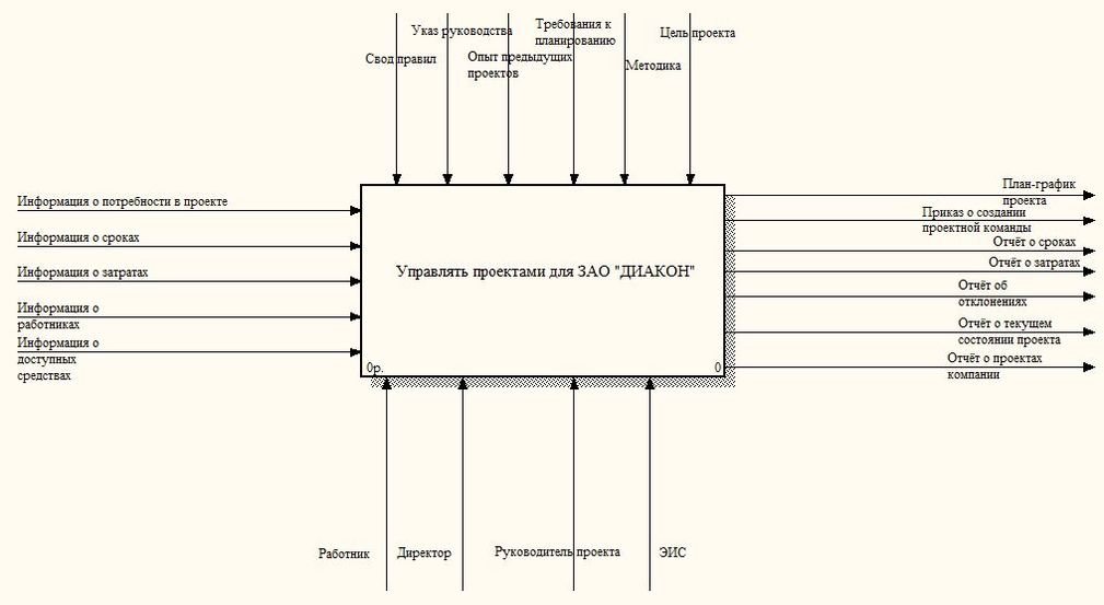 Для разработки новой технологии управления проектами для компании ЗАО «ДИАКОН» используется функциональное моделирование стандарта IDEF0.