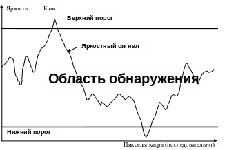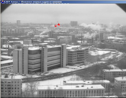 Условие тревоги, который варьируется в пределах от 0 до 99 (оптимальный режим 10), задает блоку обработки тот минимальный порог концентрации «тревожных пикселей», при появлении которого программа сработает и высветит на кнопке, соответствующей камере на которой произошло событие. «Тревожные пиксели» - представим шлейф дыма