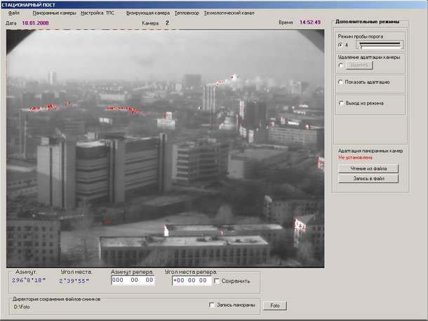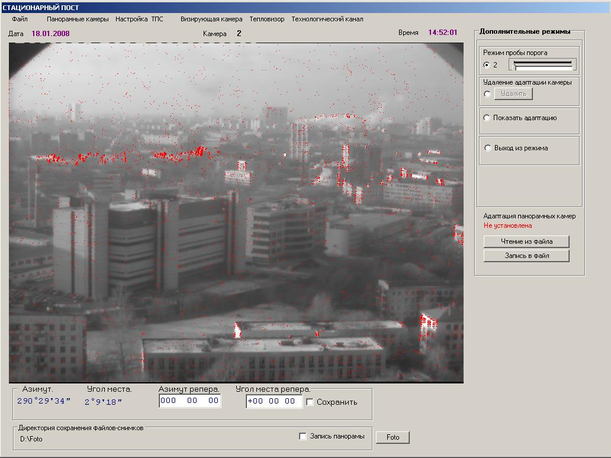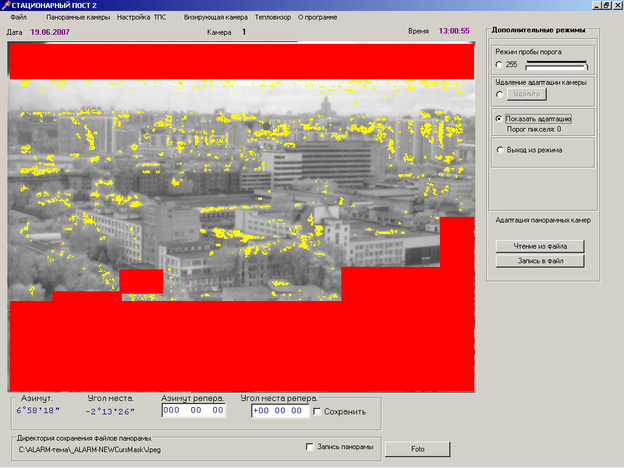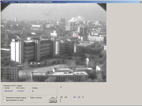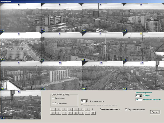 Стоит отметить, что для успешного функционирования программы, для уменьшения количества ложных срабатываний, желательна предварительная настройка адаптации и маскирования. Так же важно знать, что режим порога, который выставляется в окне обзора панорамной камеры, не влияет на данный программный блок. Для данного типа камеры (VSB-6975P) и размера окна программы, опытным путем был подобран режим порога m=13.