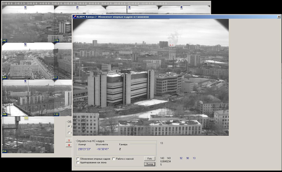 Смена эталонного кадра позволяет исключить влияние медленных процессов, таких как движение теней облаков по ландшафту, изменение общей освещённости сцены в течение дня. Наиболее эффективно менять эталонный кадр в пределах 1-2 минут.