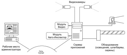 При реализации решений с использованием системы автоматического определения фактов нарушения правил дорожного движения требуется установка базового программного обеспечения SecurOS (АРМ «SecurOS») и видеоподсистемы SecurOS.
