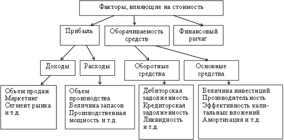 Фактор стоимости предприятия – это некая переменная, от которой зависит результативность предприятия (например, эффективность производства или удовлетворение потребностей).