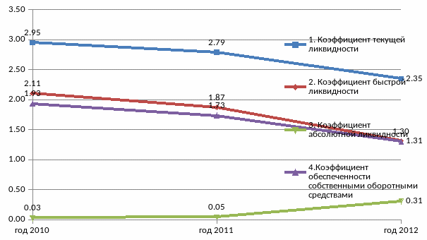 Рассмотрим подробнее показатели платежеспособности и ликвидности (см. приложение Е). Также изменение показателей ликвидности и платежеспособности более наглядно представлено на рис.2.12.