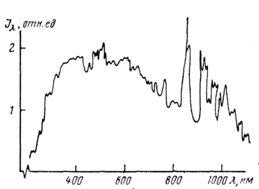 Рис. 13. Спектр излучения ксеноновой лампы ИСП-2500