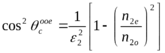 Зная главные значения показателей преломления n1o, n2o, n2e, можно рассчитать угол синхронизма с. Поскольку сечение поверхности показателей преломления одноосного кристалла плоскостью x`z` (см. рис. 10) представляет собой окружность и эллипс, то имеет место равенство