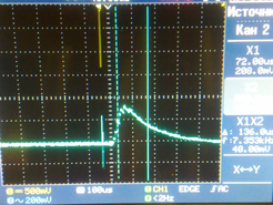 Произведя юстировку установки в соответствии со схемой 28 и собрав установку по схеме 24, были произведены измерения энергетических и временных параметров излучения лабораторного излучателя. На рисунке 29 изображена форма импульсов излучения в режиме свободной генерации (а) и в режиме модуляции добротности (б).