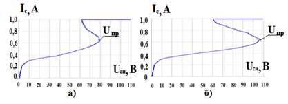 Проведенное исследование влияния технологии металлизации барьеров Шоттки на надежность GaN СВЧ транзисторов показало, что при работе в энергонапряженных режимах тепловые перегрузки могут приводить к повреждению барьера Шоттки, что приводит к изменению зависимостей токов утечки затвор-исток Iз от напряженияUси, (рис.9).