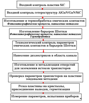 Рис.11. Блок-схема технологического маршрута AlGaN/GaN/SiC гетеротранзисторов.