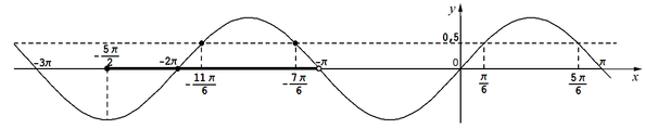 изображается жирной дугой (см. рис.). В указанном промежутке содержатся три корня уравнения:
