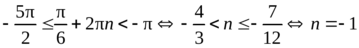 | Обоснованно получен верный ответ в п. а), но обоснование отбора корней в п. б) не приведено или задача в п. а) обоснованно сведена к исследованию простейших тригонометрических уравнений без предъявления верного ответа, а в п. б) приведен обоснованный отбор корней | 1 |