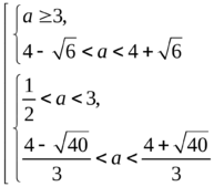 | Верно рассмотрены все случаи раскрытия модулей. При составлении или решении условий на параметр допущены ошибки, в результате которых в ответе либо приобретены посторонние значения, либо часть верных значений потеряна | 2 |