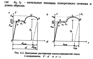 Для определения механических характеристик материала необходимо исключить влияние абсолютных размеров образца. Поэтому диаграмму растяжения, перестраивают в относительных координатах