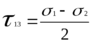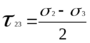 Определение величины касательных напряжений, действующих в площадках под углом 45º к осям главных нормальных напряжений.