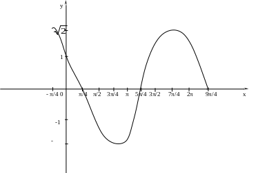 Xmax = 7 π/4 + 2πn, n€z => ymax = cos (2π – π/4) – sin (2π – π/4) =