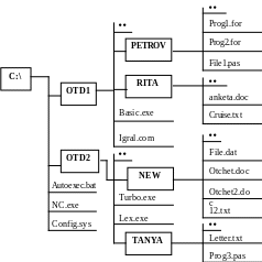 Все файлы и каталоги на диске образуют единую файловую структуру, пример которой в схематичном виде показан на рис. 1.2.
