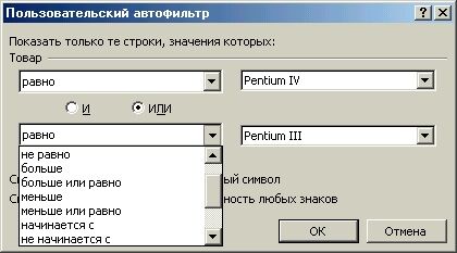 Рис. 8.5. Окно диалога Пользовательский фильтр