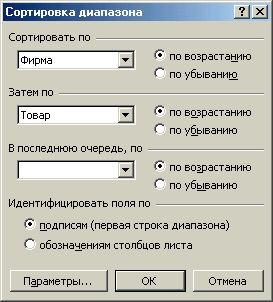 По умолчанию списки сортируются в алфавитном порядке. Для сортировки месяцев и дней недели в соответствии с их логическим, а не алфавитным порядком следует использовать пользовательский порядок сортировки, который можно выбрать с помощью кнопки Параметры…