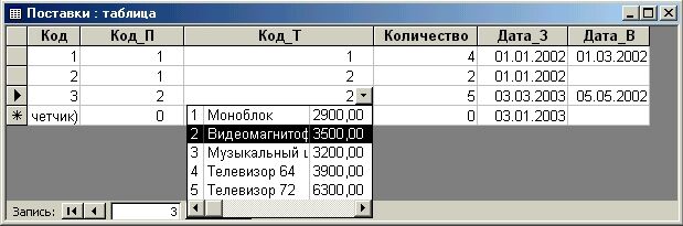 Мастер подстановок позволяет формировать для нужного поля список значений, который может содержать данные другой таблицы, либо состоять из фиксированного набора значений. В обоих случаях Мастер подстановок облегчает ввод данных и обеспечивает их достоверность.