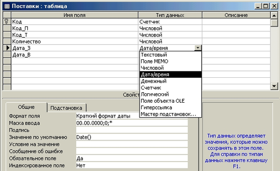 Каждое поле обладает индивидуальными свойствами, по которым можно установить, как должны сохраняться, отображаться и обрабатываться данные. Набор свойств поля зависит от выбранного типа данных.