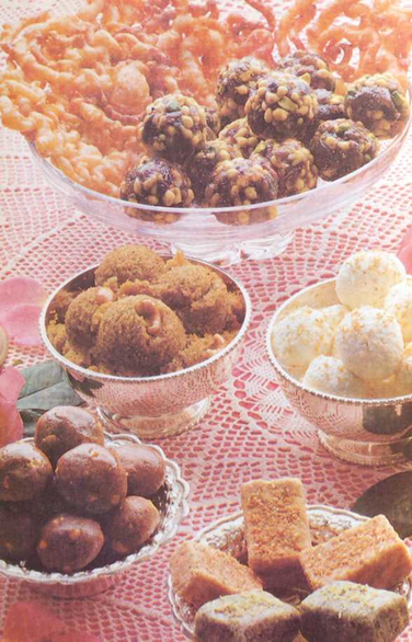 Другие сладости, к которым относятся дварака-бурфи. луглу и ладду, готовят из поджаренной нутовой муки и сухофруктов. Их можно приготовить в большом количестве и хранить несколько дней. Кроме того, одной из традиционных индийских сладостей является халава. которая не имеет ничего общего с турецкой, — индийскую халаву готовят на основе свежих фруктов, орехов, моркови и манной крупы.