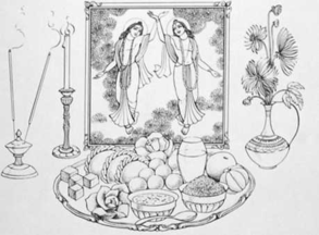 Поставьте тарелку перед изображением Кришны (можно использовать изображение из этой книги на стр. 38).