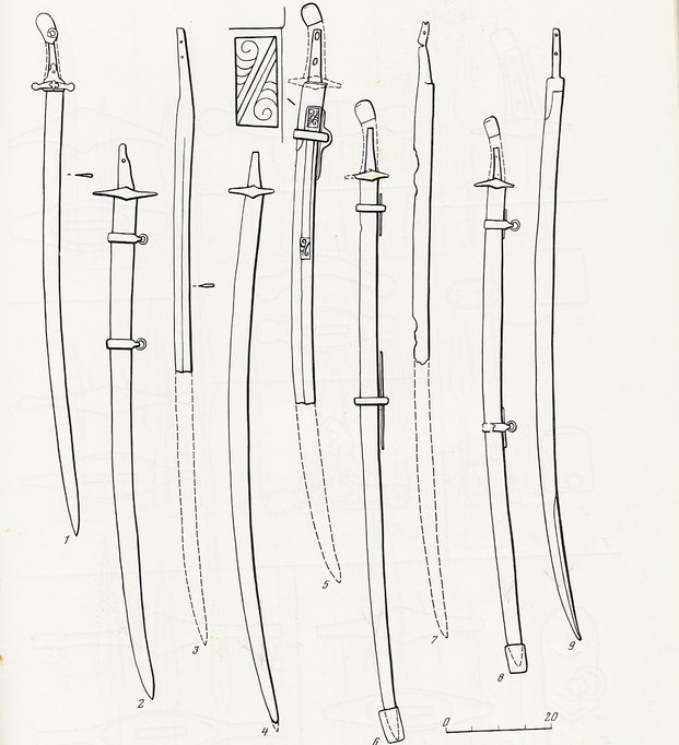 Рис. 5.Славянские и черноклобуцкие (4, 6, 8, 9) сабли