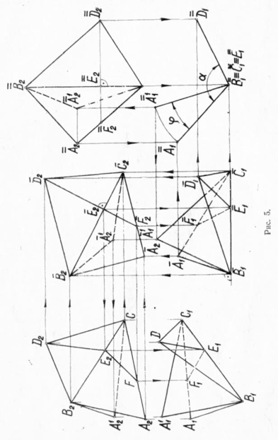 ребра ВС займет положение, параллельное линиям связи. Горизонтальные проекции траекторий точек изобразятся в виде прямых, перпендикулярных линиям связи.
