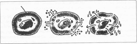 б) клетка, уничтожаемая свободными радикалами и воспалительное состояние