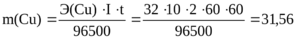 Задача 1. Определить массу выделившейся меди при пропускании тока 10 А через раствор сульфата меди в течение 2 часов.