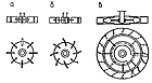 С целью увеличения турбулентности среды при перемешивании лопастными мешалками в аппаратах с большим отношением высоты к диаметру используют многорядные двухлопастные мешалки с установкой на валу нескольких рядов мешалок, повернутых друг относительно друга на 90°. Расстояние между отдельными рядами выбирают в пределах (0,3—0,8d), где d — диаметр мешалки, в зависимости от вязкости перемешиваемой среды. Для перемешивания жидкостей вязкостью не более 104 mh-cck'm^, а также для перемешивания в аппаратах, обогреваемых с помощью рубашки или внутренних змеевиков, в тех случаях, когда возможно выпадение осадка или загрязнение теплопередающей поверхности, применяют якорные или рамные мешалки. Они имеют форму, соответствующую внутренней форме аппарата, и диаметр, близкий к внутреннему диаметру аппарата или змеевика. При вращении эти мешалки очищают стенки и дно аппарата от налипающих загрязнений. Листовые мешалки имеют лопасти большей ширины, чем у лопастных мешалок, и относятся к мешалкам, обеспечивающим тангенциальное течение перемешиваемой среды. Кроме чисто тангенциального потока, который является преобладающим, верхние и нижние кромки мешалки создают вихревые потоки, подобные тем, которые возникают при обтекании жидкостью плоской пластины с острыми краями Листовые мешалки применяют для перемешивания маловязких жидкостей (вязкостью менее 50 мн-сек/м2), интенсификации процессов теплообмена, при проведении химических реакций в объеме и растворении. Для процессов растворения используют листовые мешалки с отверстиями в лопастях. При вращении такой мешалки на выходе из отверстий образуются струи, способствующие растворению твердых материалов. Основные размеры лопастных мешалок изменяются в зависимости от вязкости среды. Обычно для лопастных мешалок принимают следующие соотношения размеров: диаметр мешалки d == (0,66—0,9) D (D — внутренний диаметр аппарата), ширина лопасти мешалки Ь = (0,1—0,2) D, высота уровня жидкости в сосуде Н = (0,8—1,3) D, расстояние от мешалки до дна сосуда h as: 0,3D. Для листовых мешалок d = (0,3—0,5) D, Ь = (0,5—1,0) D, h = (0,2—0,5) D.