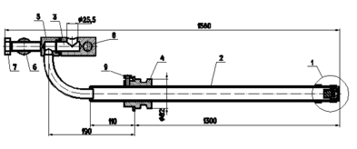 узел подвода топлива в состав которого входят штуцер 3, штуцер 5, серьга 6, болт 7, ось 8;