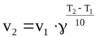 ,где v - скорость реакции; a и b – стехиометрические коэффициенты в уравнении реакции; k – константа скорости; [A] и [B] – молярные концентрации веществ A и B соответственно. Влияние температуры на скорость химической реакции. Зависимость скорости реакции от температуры приближенно может быть выражена правилом Вант-Гоффа, согласно которому при увеличении температуры на каждые 10 градусов скорость химической реакции возрастает в 2-4 раза. Если известна скорость химической реакции v1 при температуре T1, то скорость этой реакции при температуре T2 может быть вычислена по формуле