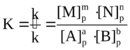 где K - константа равновесия (величина постоянная для данной температуры); [A]p, [B]p, [M]p и [N]p – равновесные молярные концентрации веществ A, B, M, и N; a, b, m, n – стехиометрические коэффициенты.