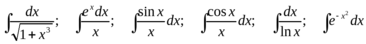 Примеры функций, неопределённые интегралы от которых не выражаются через элементарные функции.
