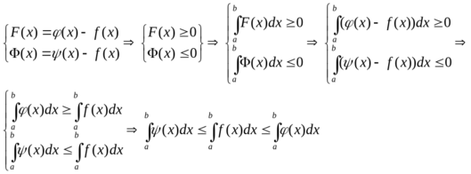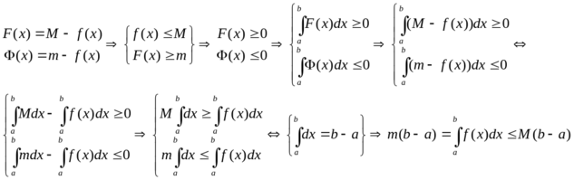 Значение определённого интеграла находится между произведением наименьшего и наибольшего значения подынтегральной функции на длину отрезка интегрирования, т.е.