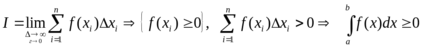 Если подынтегральная функция на отрезке [a,b] не меняет знак, то интеграл является числом такого же знака, что и подынтегральная функция на отрезке интегрирования [a,b], т.е., если f(x)≥0, хє[a,b] =>